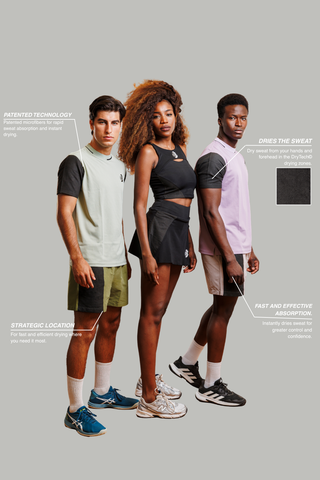 Our garments not only absorb sweat, but also evaporate it quickly. This keeps the absorbent technology lightweight and comfortable, even during long matches or in high humidity.